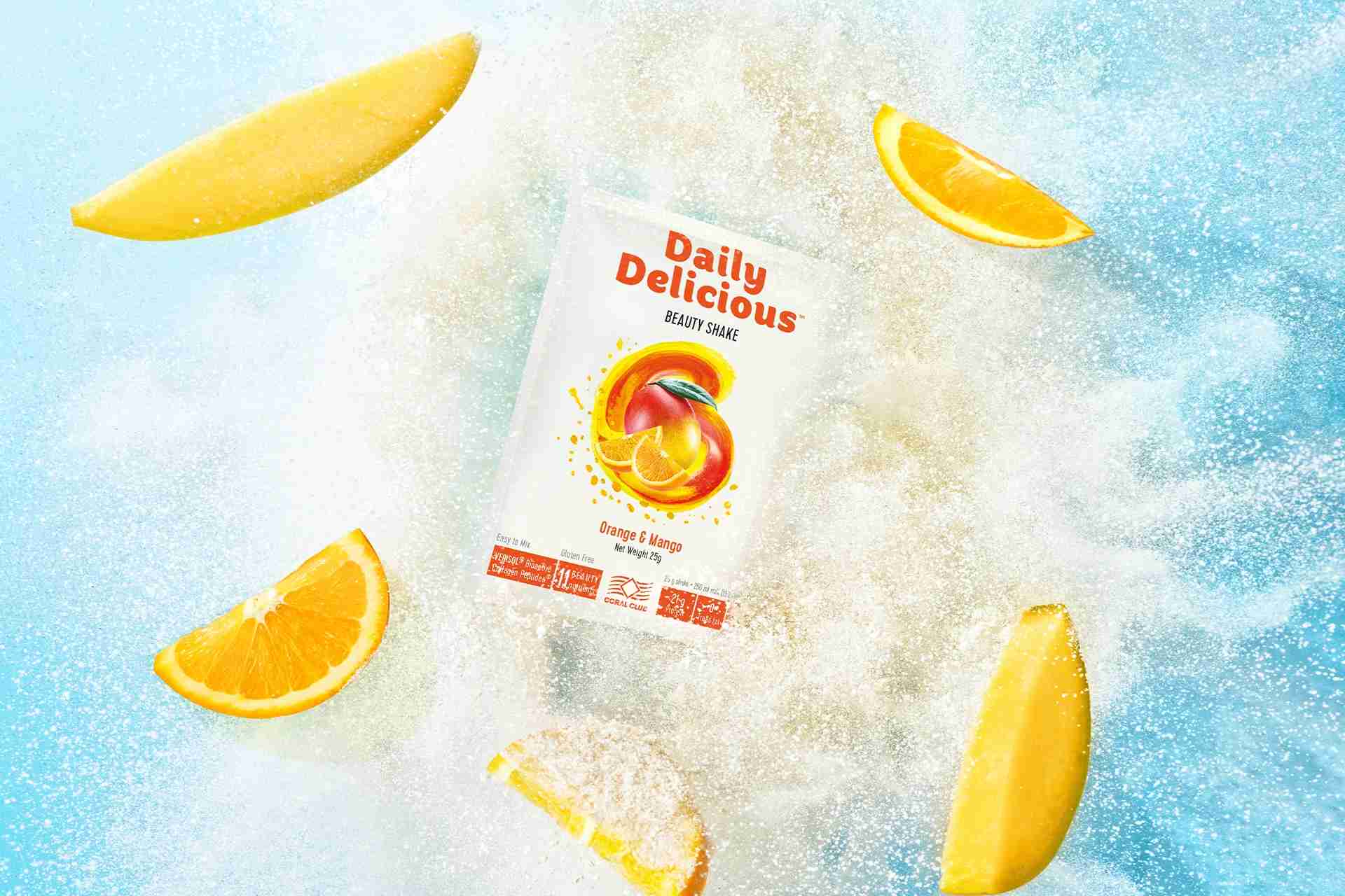 დეილი დელიშეს ბიუთი შეიკი ფორთოხალი-მანგო, 25 გ / 1 პორცია
